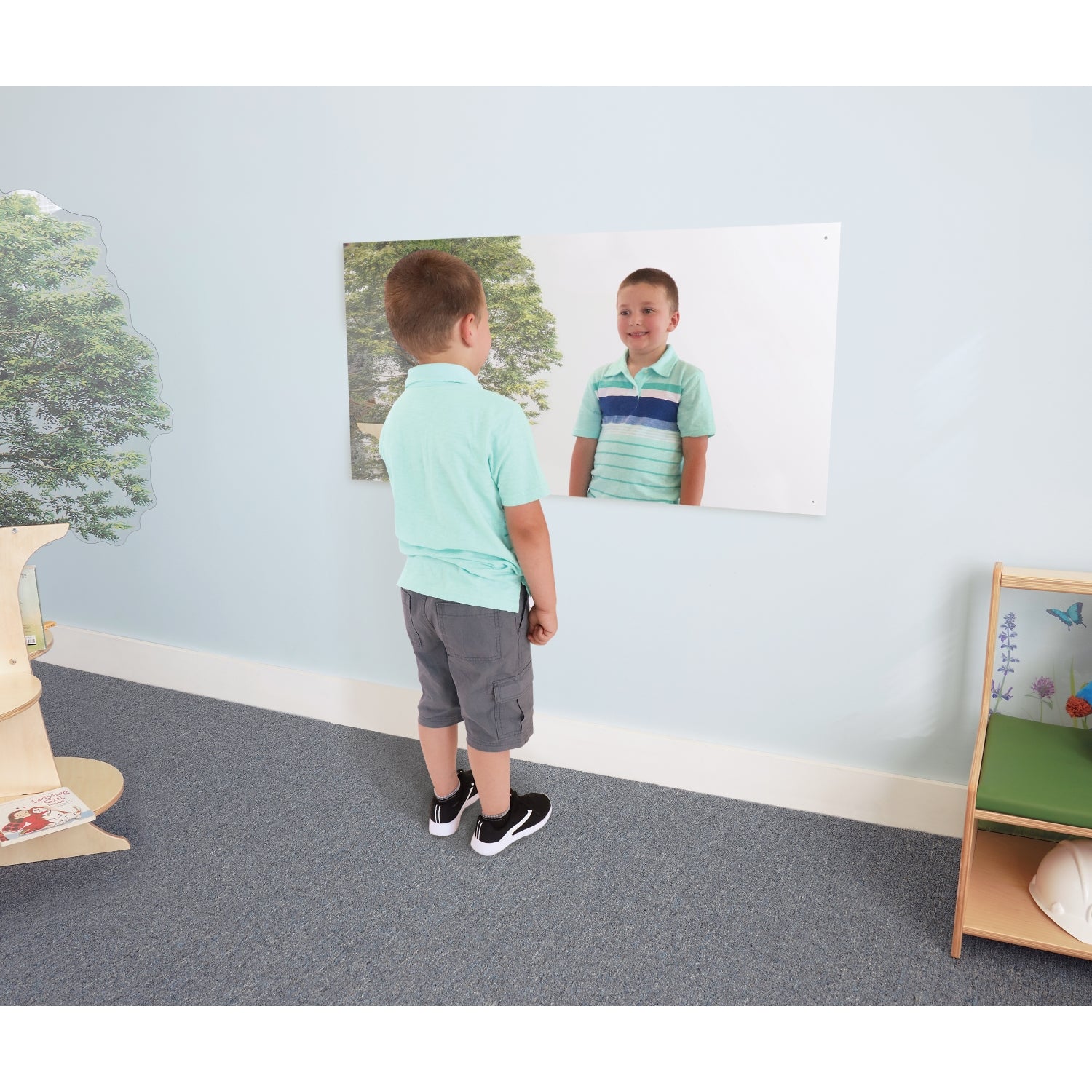 Best Seller! Mirrors are an important furnishing in an Early Learning environment because they help young children develop self-awareness, self-esteem, curiosity, and emotional and cognitive development. Our popular and economical rectangle mirror is constructed in safe, shatterproof acrylic and the edges and corners have been rounded for additional safety. Wall mounting screws included. Need a smaller size? Check out our WB6625 Square Mirror [sold separately].