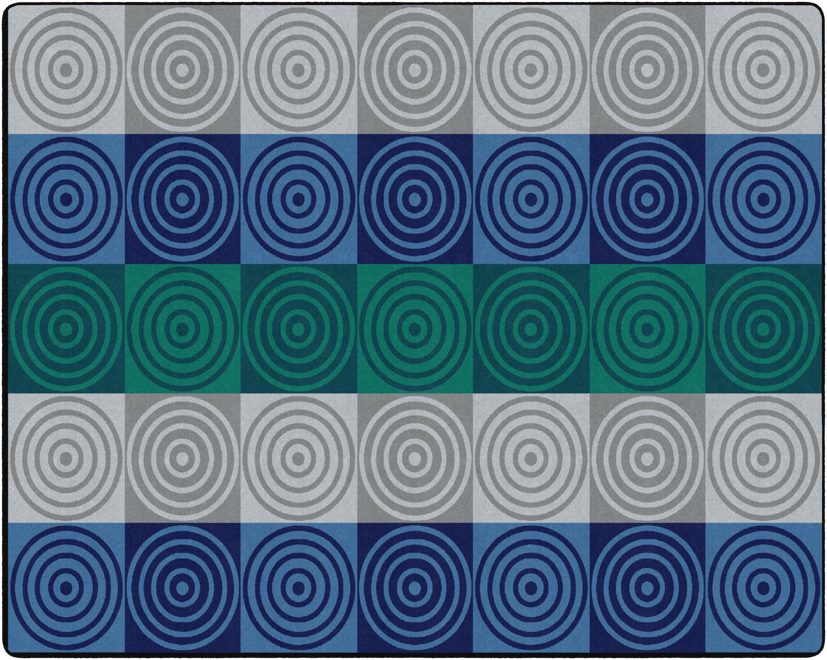 This simple educational rug in cool and calming blue and teal shades is the perfect instructional and organizational tool for any school classroom, daycare, playroom, or child's bedroom. Children of all ages will love having their very own seat for learning.