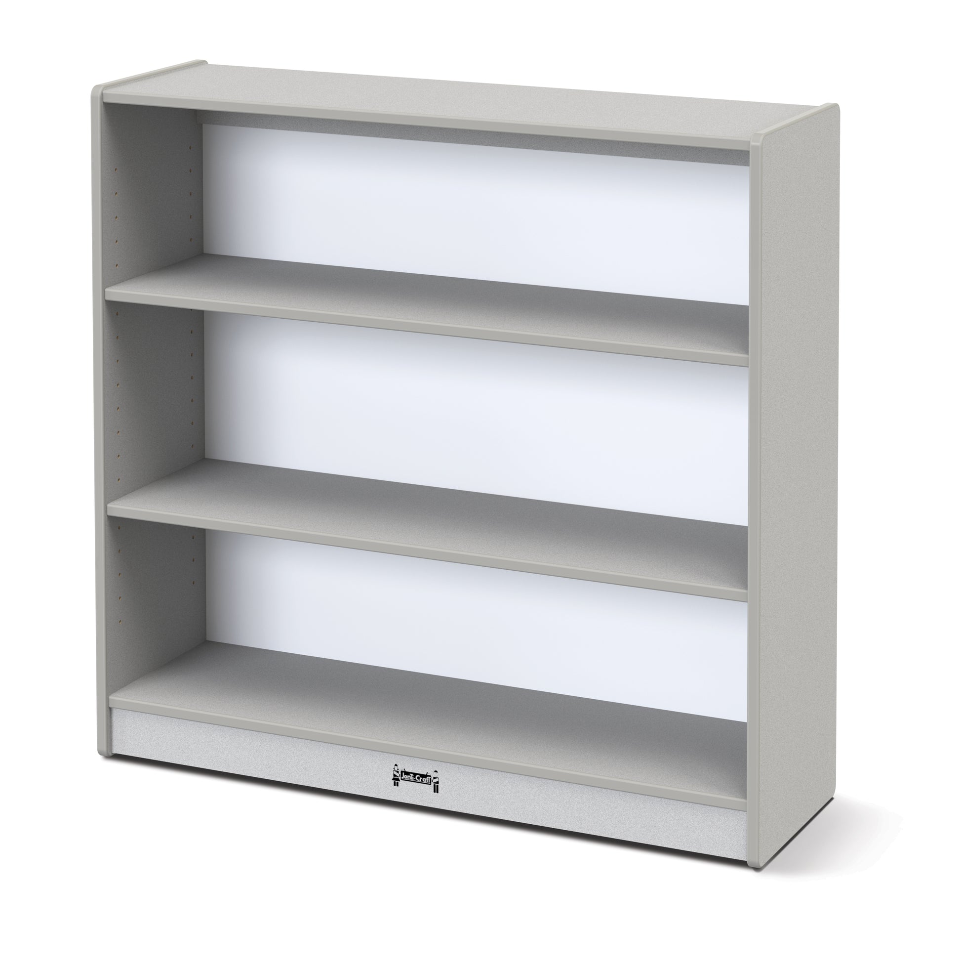 Store hundreds of books at the right height for elementary children. This fully assembled bookcase features two shelves that adjust in 1.25 inch increments. Wall fastener included. Constructed of double-sided freckled gray laminate with gray TRUEdge.